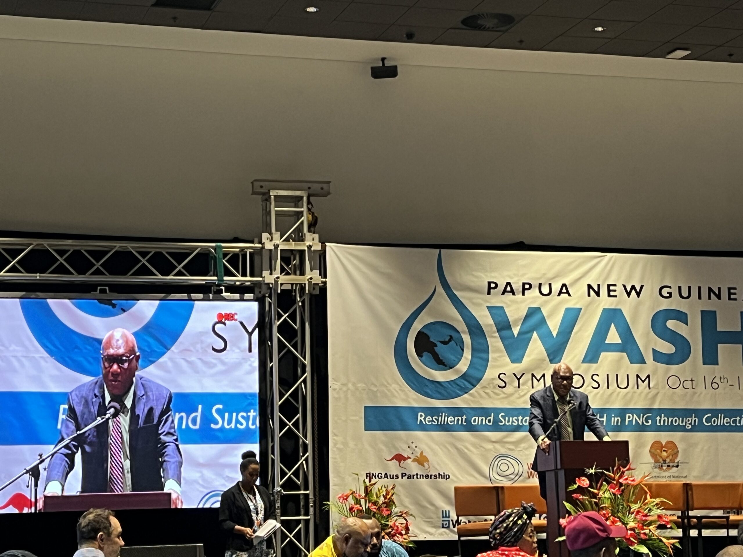 Also during Barbara’s visit to Port Moresby, she attended the PNG WASH Symposium 2024. This was organised by the WaSH Programme Management Unit (PMU) under the PNG Department of National Planning and Monitoring (DNPM). This 2-day conference, held at APEC Haus in Port Moresby ran from the 16th to 17th October. It explored the theme “Resilient and Sustainable WaSH in PNG through Collective Action”