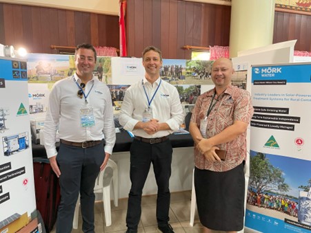 Moerk Water talked to a range of different utilities about water resilience and how renewable energy powered water treatment is the best option to build resilience for many countries. Dr Mat Francis also presented a technical talk on minimizing the cost of seawater desalination systems by designing smart renewable energy systems which extend operating hours and harness local renewable energy assets allowing for smaller treatment systems to be built. Moerk Water’s General Manager Richard Ashley was also elected as one of the allied directors of the PWWA board.